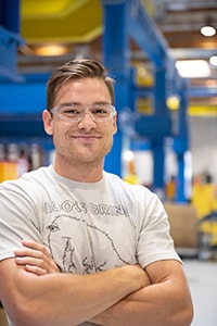 His second rotation was supposed to be in Sweden, but Covid-19 put a stop to that. Instead, from his home in Ohio he worked virtually with the heating technology division Kanthal. The team was designing a new component for a burner system at a biomass plant. “It was about renewable energy, so it was right up my alley,” he says. “I was retrofitting a custom component that could use some of the waste heat to introduce more energy to the system.”